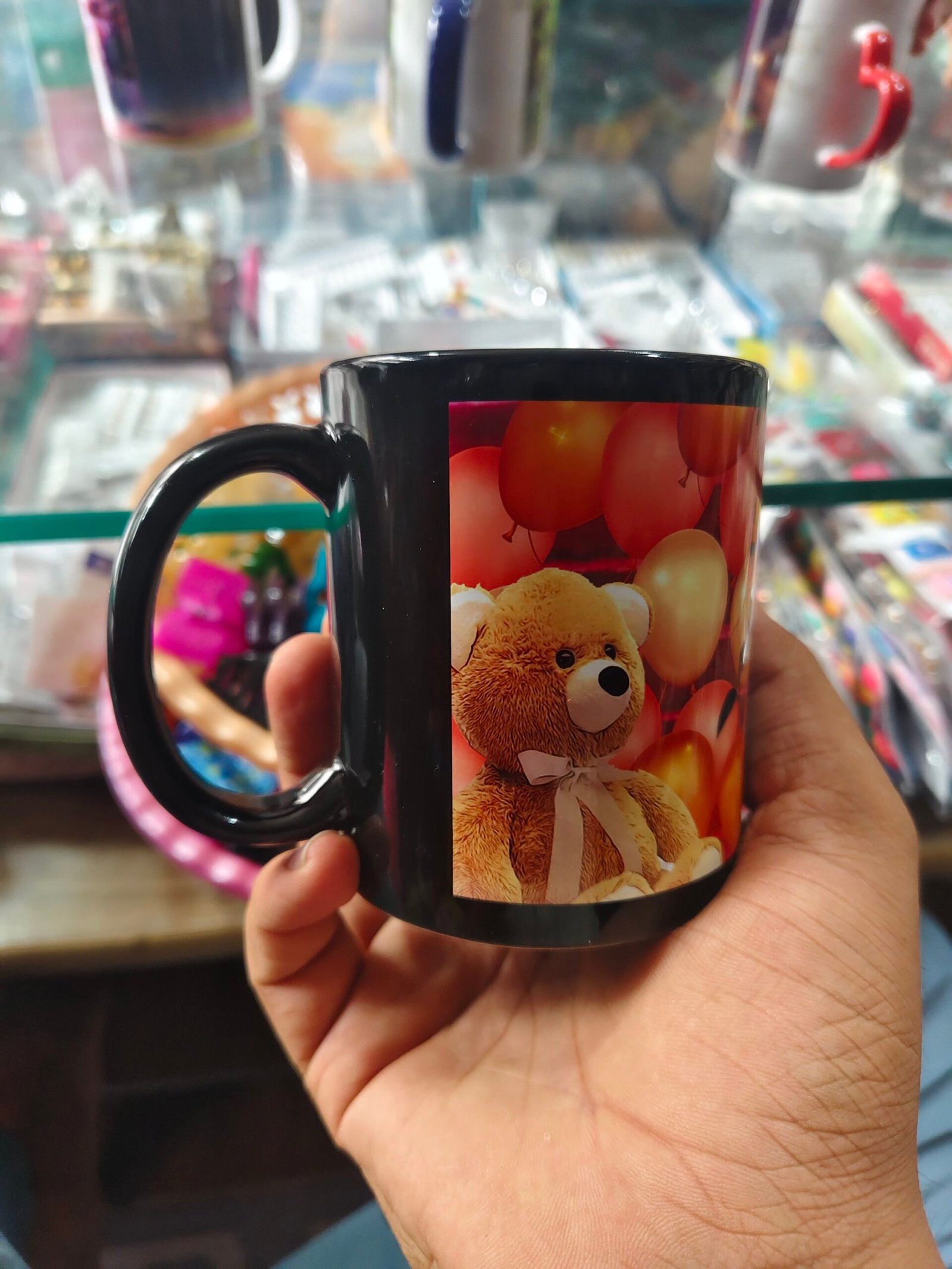 black cup with photo